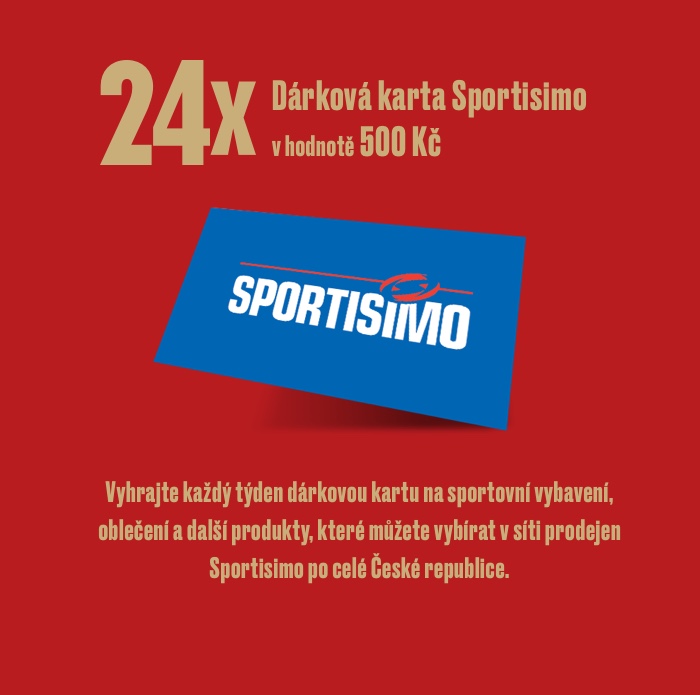 Každý týden hrajeme o dárkové karty Sportisimo a po skončení soutěže losujeme hlavní výhru